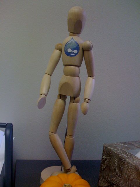 A number of months ago we all found these little wooden guys on our desk. Shawn took mine home last night and it came back as the Drupal man! I love it! Thanks Shawn!